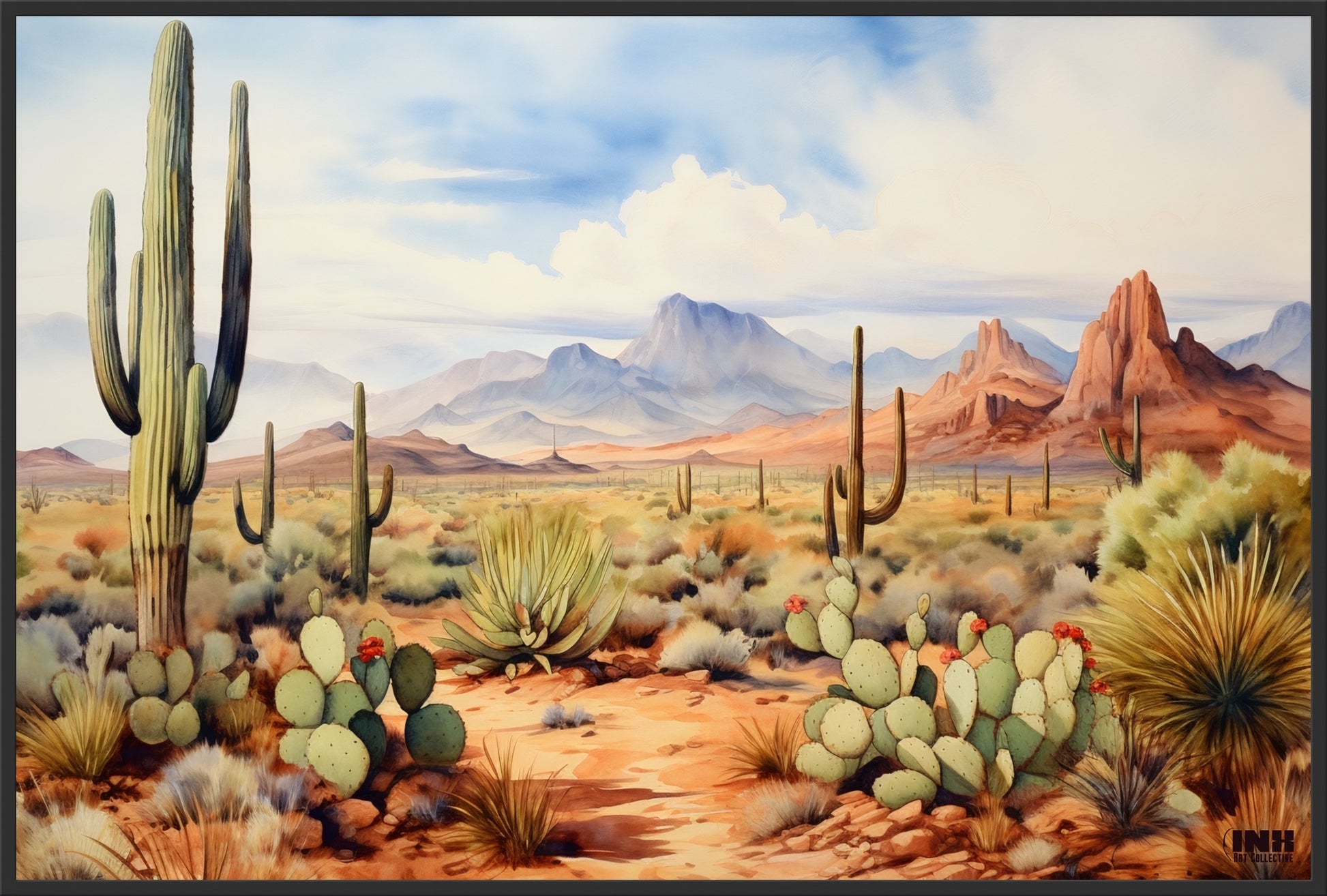 Bring the warmth and beauty of the desert into your home with this Desert Cactus Landscape Canvas Wall Art. Featuring tall saguaro cacti, vibrant prickly pear blooms, and sweeping mountain ranges in the distance, this artwork captures the essence of the Southwest with stunning realism. The earthy tones and expansive desert scene create a calming yet bold statement, perfect for enhancing rustic, bohemian, or Southwestern-inspired spaces.