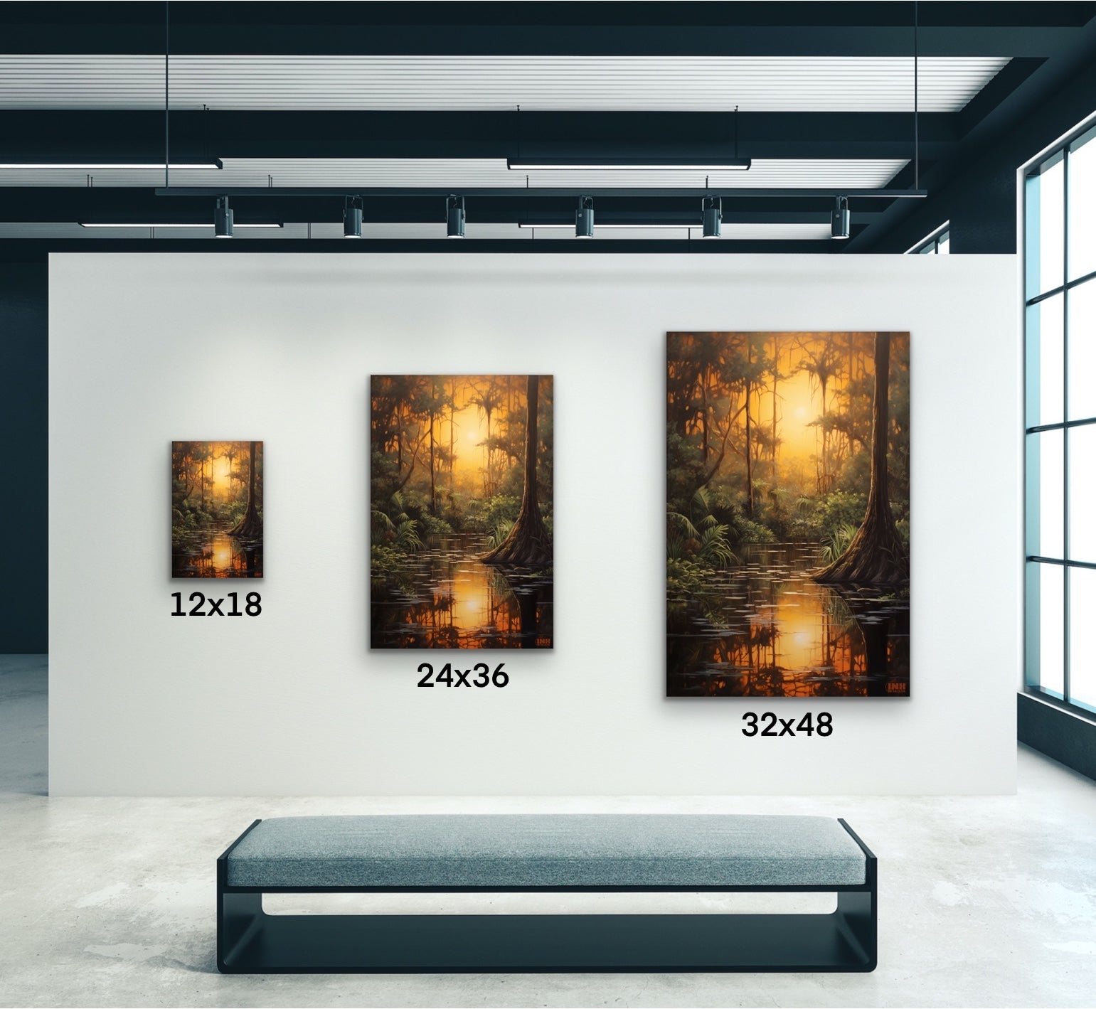 Bring the warmth and calm of golden hour in the swamp to your walls.
