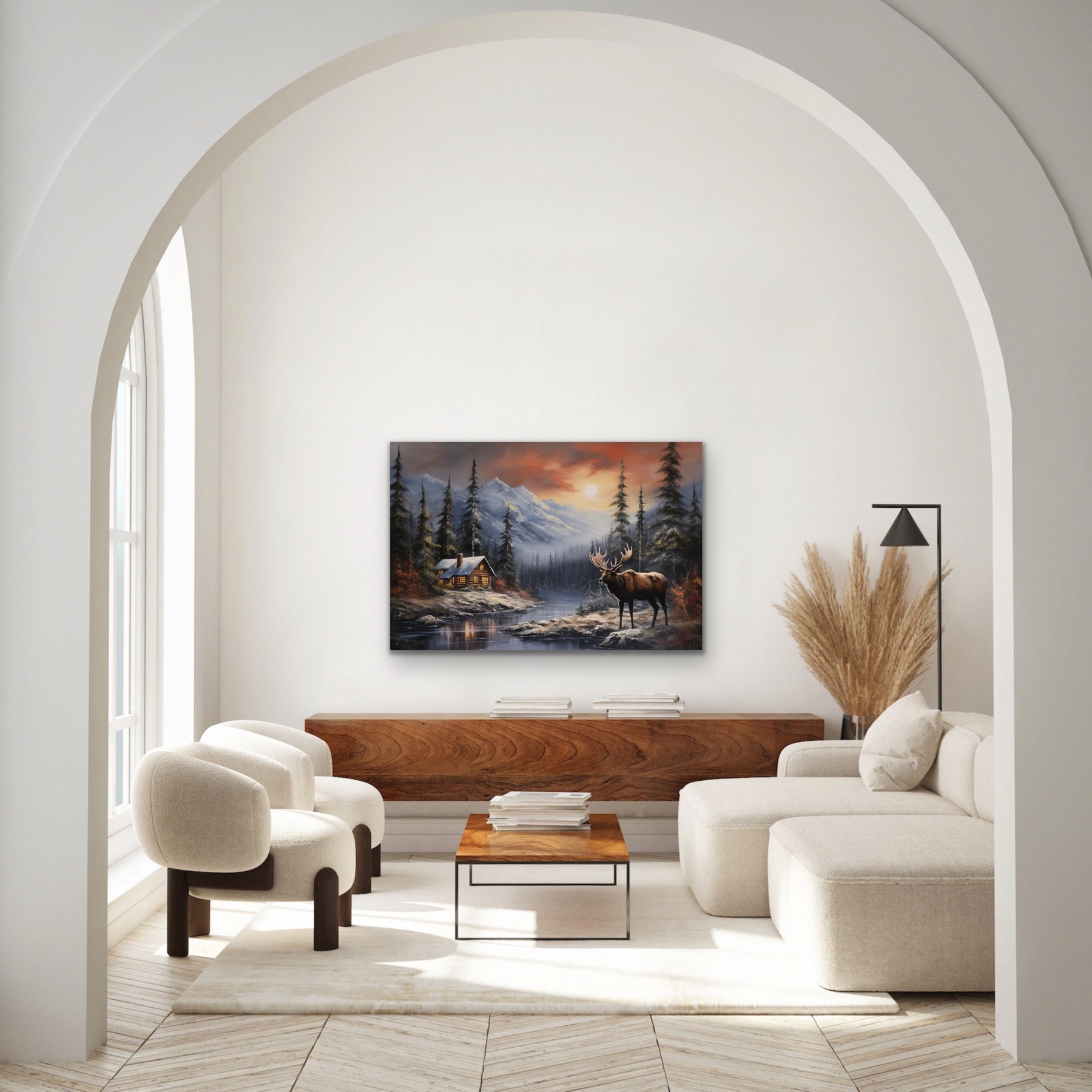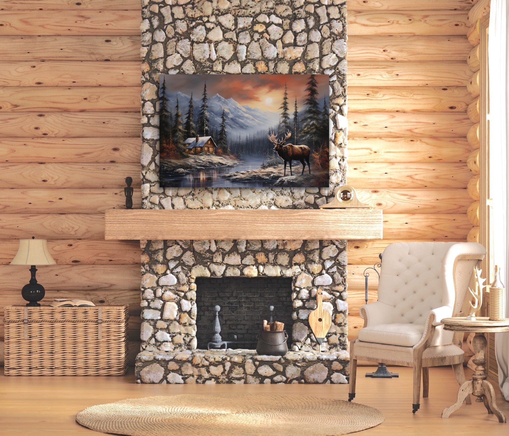 For nature enthusiasts or those seeking a touch of rustic elegance, this canvas art print is a tribute to the enduring charm of cabin life and the wild beauty of the moose. Order now and let "Wildwood Retreat" transform your space into a sanctuary of natural majesty, making a powerful statement about the timeless allure of wilderness living.
